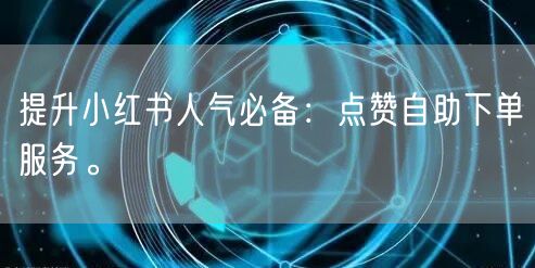 提升小红书人气必备:点赞自助下单服务。