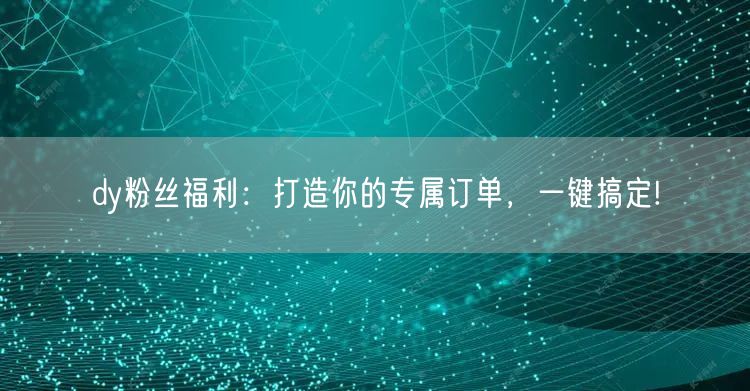 亲爱的DY粉丝们,好消息来啦!我们为您推出了全新的粉丝福利,让您在享受我们服务的同时,更加感受到专属定制的温暖。现在就让我们一起打造您的专属订单,轻松实现一键搞定!