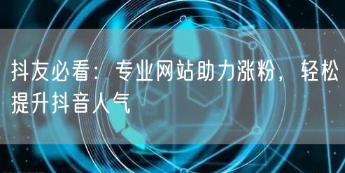 抖音已成为现代社交媒体的热门平台之一,拥有庞大的用户群体和广阔的市场前景。对于想要在抖音上扩大影响力的抖友们来说,如何有效涨粉和提升人气成为了关注的焦点。本文将向大家介绍一些专业网站助力抖音涨粉的实用方法和技巧。