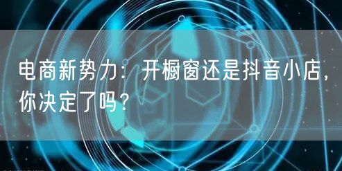 面对开橱窗与抖音小店这两种电商模式,商家如何做出明智的选择呢?以下是一些建议:
