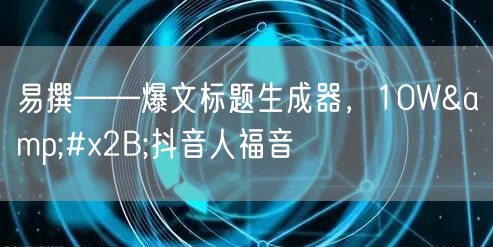 在当今数字化时代,内容创作已经成为许多人的日常必备技能。尤其是抖音等短视频平台的兴起,让内容创作者们面临着更加激烈的竞争。如何快速生成吸引人的爆文标题,成为了每个创作者关注的焦点。这时,易撰爆文标题生成器的出现,无疑为抖音创作者们带来了福音。