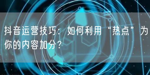 抖音运营技巧:如何利用“热点”为你的内容加分?