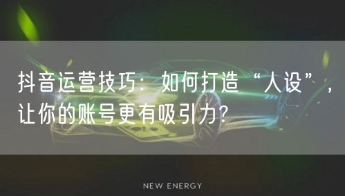 通过以上几个方面的运营技巧和努力,你可以在抖音平台上打造出具有吸引力的“人设”,提升你的账号吸引力。不断学习和优化你的运营策略,与观众建立良好的互动关系,你将获得更多的粉丝关注和支持。