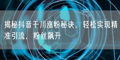 通过了解抖音千川涨粉的秘诀,掌握精准引流方法,我们可以快速提升粉丝数量。优质内容、精准定位、互动策略和合理利用抖音营销工具是实现粉丝增长的关键。希望本文的攻略能助你在抖音平台上轻松实现精准引流,粉丝飙升。