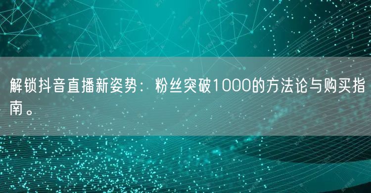 解锁抖音直播新姿势:粉丝突破1000的方法论与购买指南。