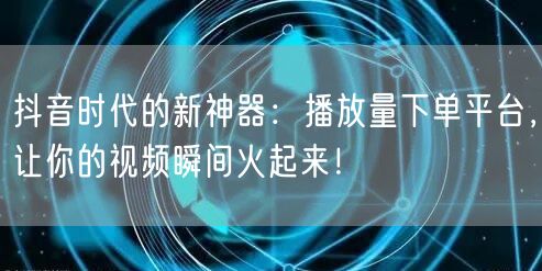 抖音时代的新神器:播放量下单平台,让你的视频瞬间火起来!
