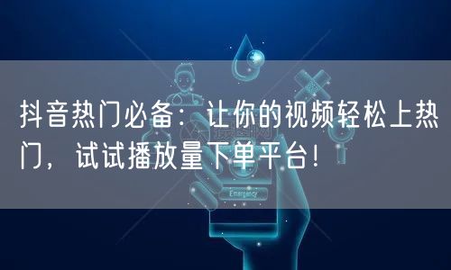 抖音热门必备:让你的视频轻松上热门,试试播放量下单平台!