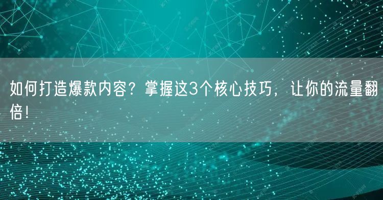 打造爆款内容并非一蹴而就,需要深入了解受众需求、高质量内容创作和合理运用SEO优化技巧。通过掌握这三个核心技巧,你的流量将有望实现翻倍!赶快行动起来,创造属于你的爆款内容吧!
