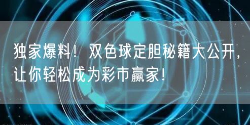 独家爆料!双色球定胆秘籍大公开,让您轻松成为彩市赢家!在这个充满机遇和挑战的时代,彩票已经成为许多人实现财富梦想的重要途径。然而,想要在彩市中脱颖而出,除了运气之外,还需要一些技巧和策略。今天,就让我们一起揭秘双色球的定胆秘籍,助您轻松赢彩市!