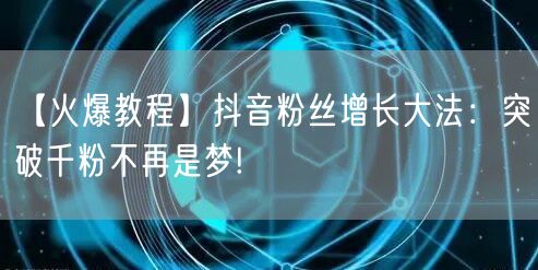 通过本文介绍的抖音粉丝增长大法,相信您已经对如何突破千粉大关有了更清晰的了解。当然,粉丝增长需要时间和努力,但只要你坚持不懈,不断学习和优化,成为抖音达人不再是遥不可及的梦想!赶快行动起来,让我们一起在抖音上创造更多的精彩!