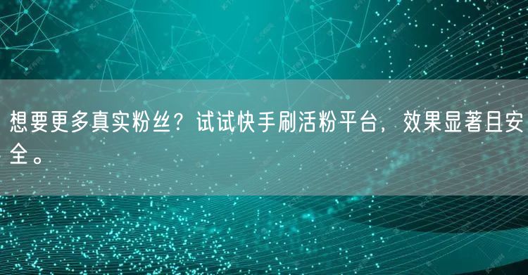 如果你想要快速增加真实粉丝,并且希望这个过程是安全可靠的,那么快手刷活粉平台是一个非常好的选择。它可以帮助你快速突破自己的粉丝数量瓶颈,让你的影响力倍增。同时,使用快手刷活粉平台也非常简单,只需要按照平台的指示进行操作即可。