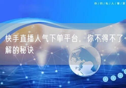 通过了解快手直播人气下单平台的秘诀和使用方法,你可以更好地提升直播间的人气,吸引更多的观众关注和参与。同时,记得不断优化自己的直播内容和互动方式,提高观众的满意度和忠诚度。祝愿你在快手直播的道路上越走越远!