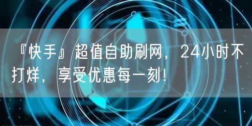欢迎来到『快手』自助刷网,一个全天候不打烊的购物天堂!在这里,您可以尽情享受优惠每一刻,体验不停歇的购物乐趣。