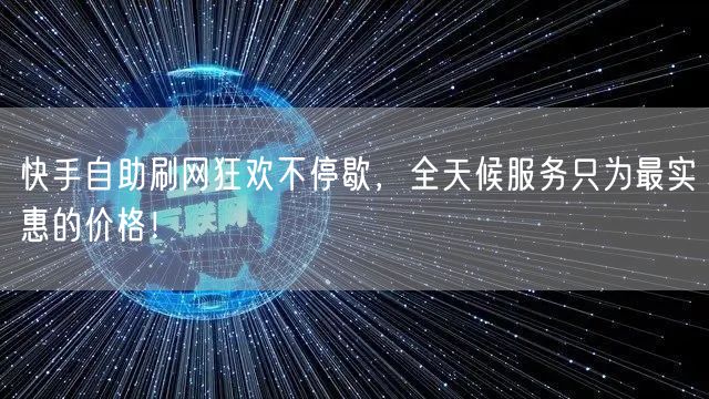 快来参与快手自助刷网的狂欢不停歇活动吧!全天候服务,最实惠的价格,让您尽享购物的乐趣。让我们共同度过一个充满欢乐和实惠的购物盛宴!