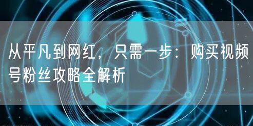 在这个社交媒体盛行的时代,拥有众多粉丝的关注意味着更高的曝光率和影响力。如何从平凡人转变为网红?购买视频号粉丝是其中的一条捷径。本文将为您详细解析购买视频号粉丝的攻略,助您轻松吸引大量粉丝,成为网络红人。