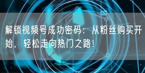 2.持续改进:不断尝试新的创作方向和推广方式,持续改进和优化视频号运营流程。同时关注行业动态和竞争对手情况及时调整策略保持竞争优势。最终实现视频号的长久发展和成功变现。通过以上步骤的实践和总结我们可以发现解锁视频号成功密码的关键在于从粉丝购买开始注重内容质量和形式创新加强互动与运营以及善于数据分析和优化。只要我们紧跟趋势不断学习和进步就能轻松走向热门之路!让我们一起努力创造更多优质的视频号内容吧! SEO关键词:[视频号成功密码, 粉丝购买, 热门视频, 互动与运营, 数据分析与优化