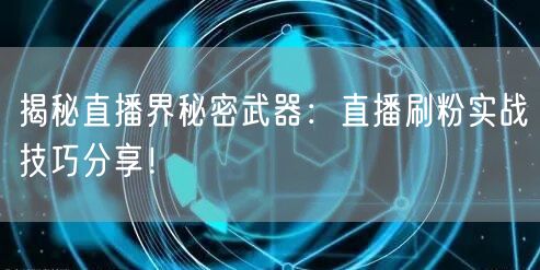 随着互联网的快速发展,直播行业逐渐崭露头角,成为众多网红和商家的新宠。在这个竞争激烈的市场中,如何快速吸引粉丝关注,实现粉丝数量的快速增长,成为每一个直播者关注的焦点。本文将为你揭秘直播界的秘密武器,分享一些实用的直播刷粉实战技巧。