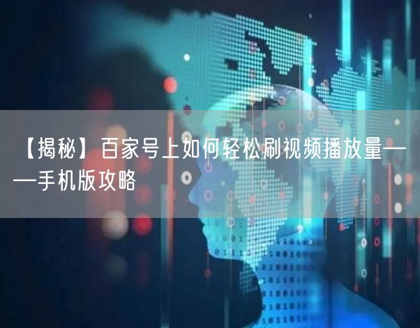 随着移动互联网的普及,百家号作为一个自媒体平台,吸引了众多内容创作者。在这个平台上,视频的播放量成为了衡量内容质量的重要指标之一。本文将为大家揭秘百家号上如何轻松提升视频播放量的手机版攻略。让我们掌握有效的策略,助力视频脱颖而出。