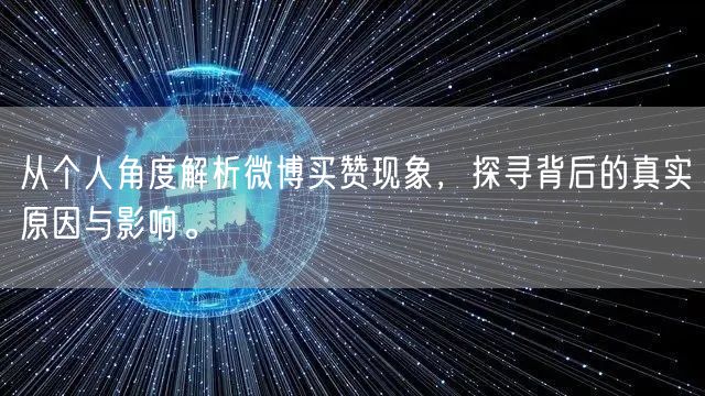 首先,为什么会出现买赞现象呢?我认为,这其中包含了人们对于快速获得认可、提升社交地位的渴望。在快节奏的生活中,人们希望通过简单直接的方式获得关注和认同,而点赞数往往成为了衡量一个人影响力的重要指标。因此,一些人选择通过购买点赞来提升自己微博的曝光度和影响力。