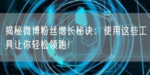 通过本文的介绍,相信你已经了解了微博粉丝增长的秘诀和实用的微博推广工具。掌握这些方法和技巧,让你的微博账号吸引更多粉丝,提升社交媒体营销效果。在竞争激烈的微博环境中轻松领跑,成为行业佼佼者!