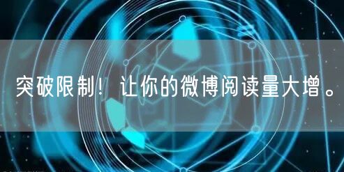 通过以上几个方面的努力我们可以突破限制让自己的微博阅读量大增同时提高自己在社交媒体上的影响力和知名度。需要注意的是在创作内容和推广过程中要始终坚持真实、有价值、有趣的原则才能赢得用户的信任和喜爱。希望本文的分享能对大家有所帮助祝愿大家在微博平台上取得更大的成功!