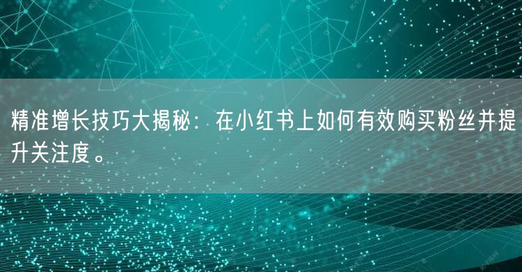 通过本文的介绍,希望能为您在小红书上有效购买粉丝并提升关注度提供有益的参考。记住,精准增长需要持续的努力和策略调整。祝您在小红书上取得更大的成功!
