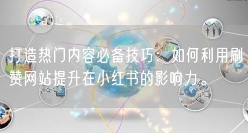 本文介绍了如何利用刷赞网站提升在小红书上的影响力,掌握打造热门内容的必备技巧。通过选择适合的刷赞网站、合理使用刷赞服务以及注重内容的质量和原创性等方法,你可以更好地吸引用户的关注和分享,提升在小红书上的影响力。