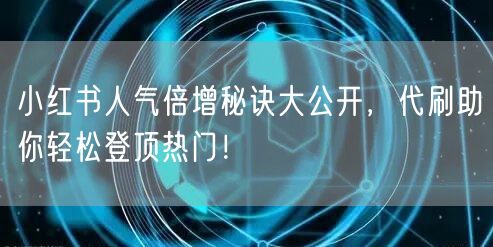 通过本文的介绍,相信您对小红书人气倍增的秘诀已经有了更深入的了解。从内容创作、互动策略到代刷技巧,全方位掌握这些秘诀,让您在竞争激烈的市场中脱颖而出,迅速成为小红书达人!